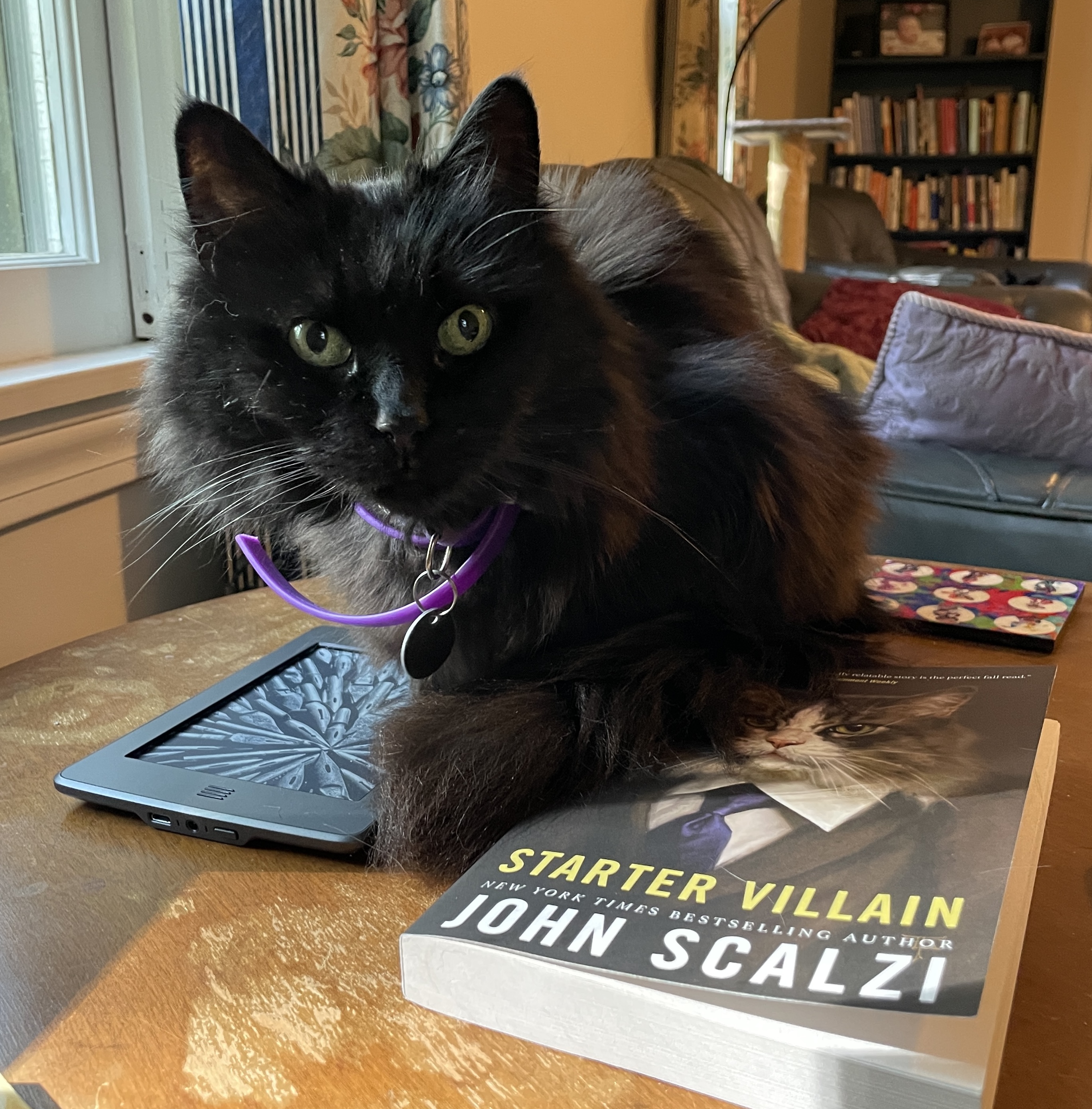 I didn’t quite keep up with my book-a-week average in September, but made up for it with some good games. Meanwhile, our latest foster kitten got adopted, so this month the regular cats sat in on my reading. Suki, who normally takes feline aloofness to new heights, seemed especially interested in one of the books.